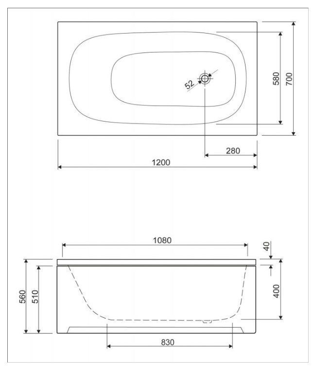 Акриловая ванна Cezares Eco 120*70