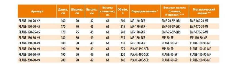 Акриловые ванны серии Plane