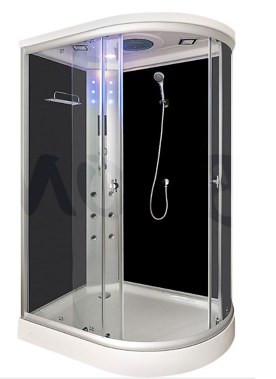 Наличие крыши в душевой кабине позволяет использовать тропический (верхний) душ, вентилятор и верхнюю подсветку. Душевые кабины с крышей на 15 – 20 см выше открытых, что важно помнить при покупке. К тому же в таких кабинах значительно теплее.