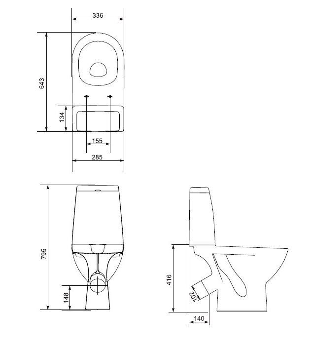 Напольный вид установки унитаза пригоден для компактов, моноблоков и приставных унитазов.
