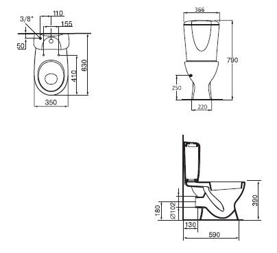 Компакт – самый распространенный тип унитазов, состоящий из чаши и бачка, соединенных друг с другом крепежами.