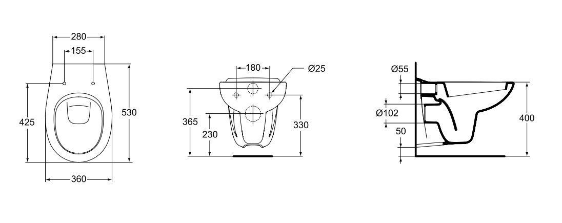 Напольный вид установки унитаза пригоден для компактов, моноблоков и приставных унитазов.