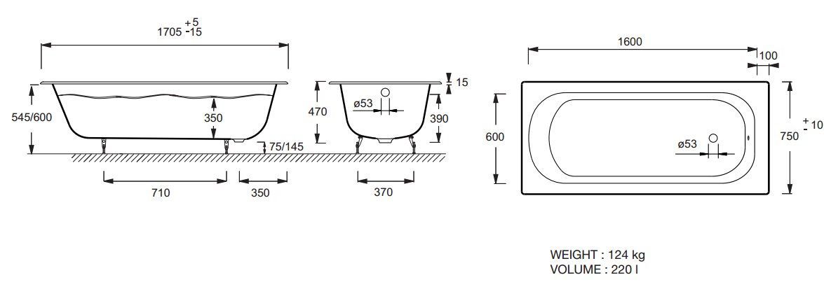 Комплектующие для Ванна чугунная Jacob Delafon Catherine E2953-F-00 175*75