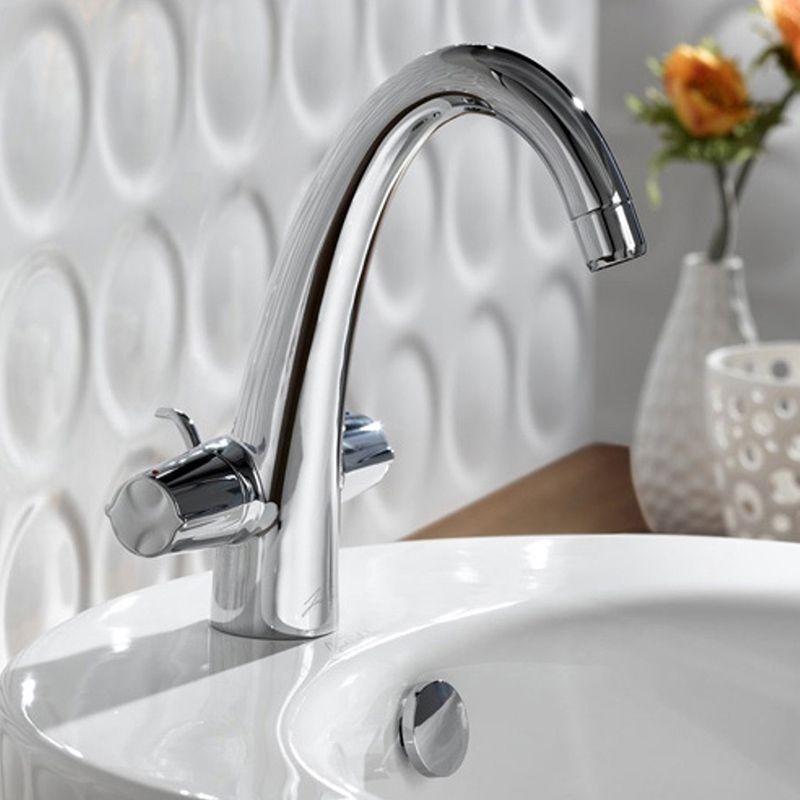 Двухвентильное управление смесителем осуществляется при помощи вращения вентилей холодной и горячей воды, которые регулируют не только температуру воды, но и силу напора.