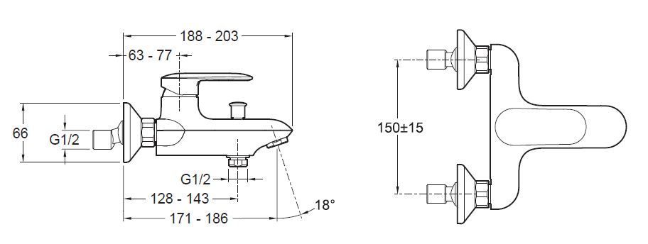 Смеситель для ванны с душем устанавливается на трубы холодного и горячего водоснабжения с помощью эксцентриков и обладает широким спектром применения.