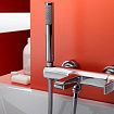 На борт ванны монтируются смесители специальной конструкции, состоящие как правило из нескольких функциональных деталей, врезаемых в отдельные отверстия. Шланг для душа при этом монтаже остается скрытым бортиком ванны.