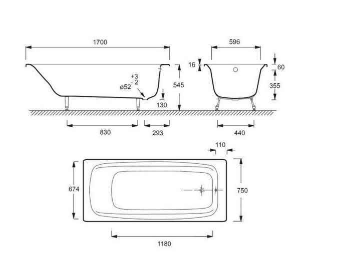 Ванна чугунная Jacob Delafon Diapason E2937 170*75