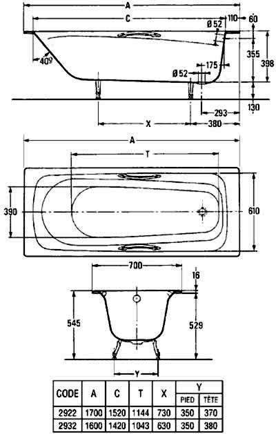 Комплектующие для Ванна чугунная Jacob Delafon Melanie E2925 170*70 с ручками