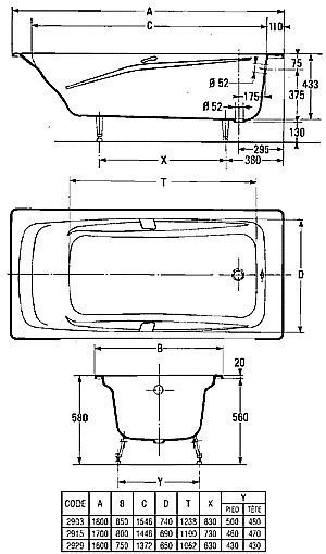 Комплектующие для Ванна чугунная Jacob Delafon Repos E2903 180*85 с ручками