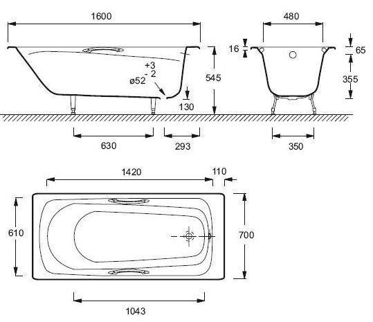 Комплектующие для Ванна чугунная Jacob Delafon Repos E2929 160*75 с ручками