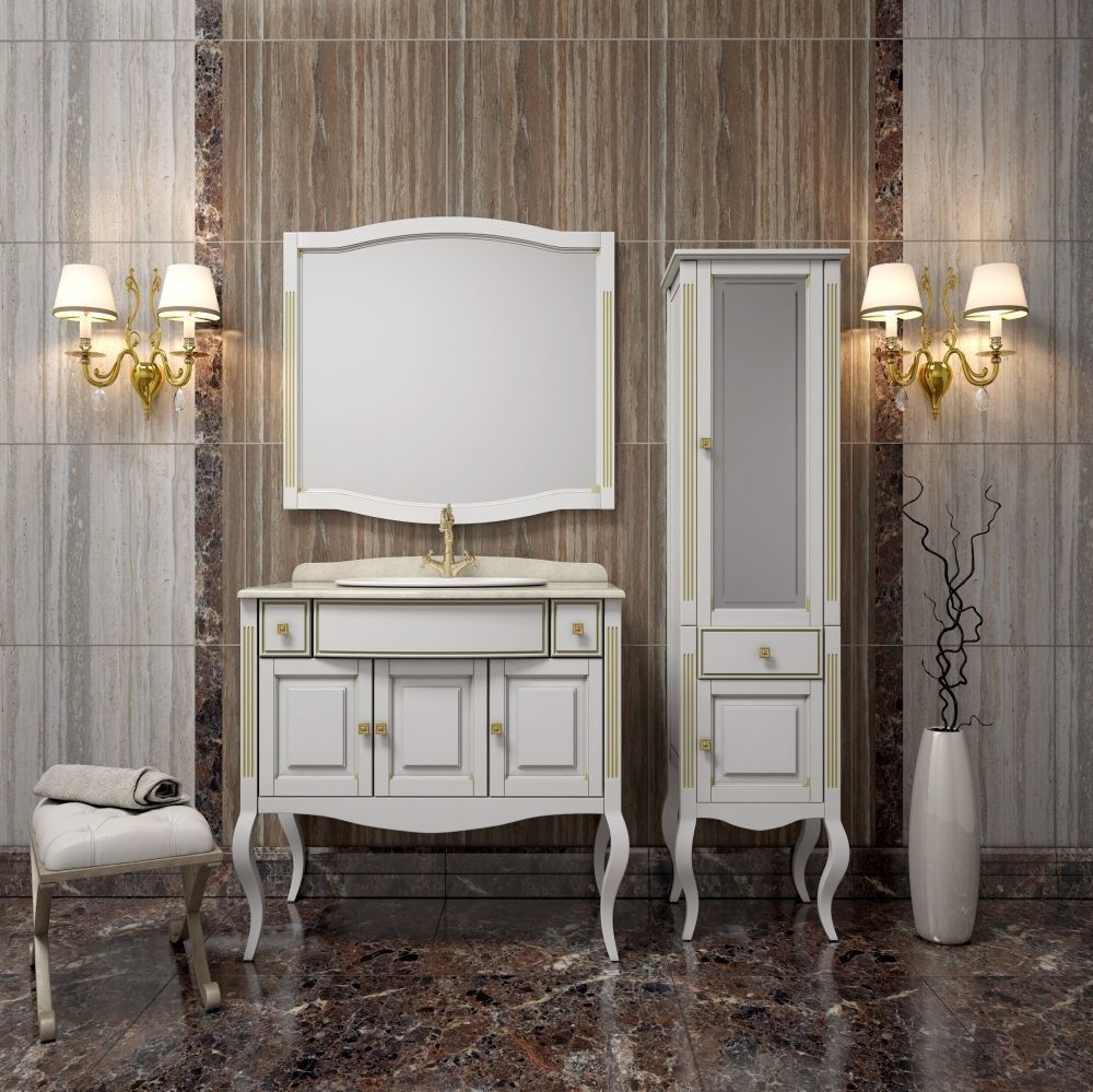 Пенал Opadiris Лаура 45 R белый с бежевой патиной