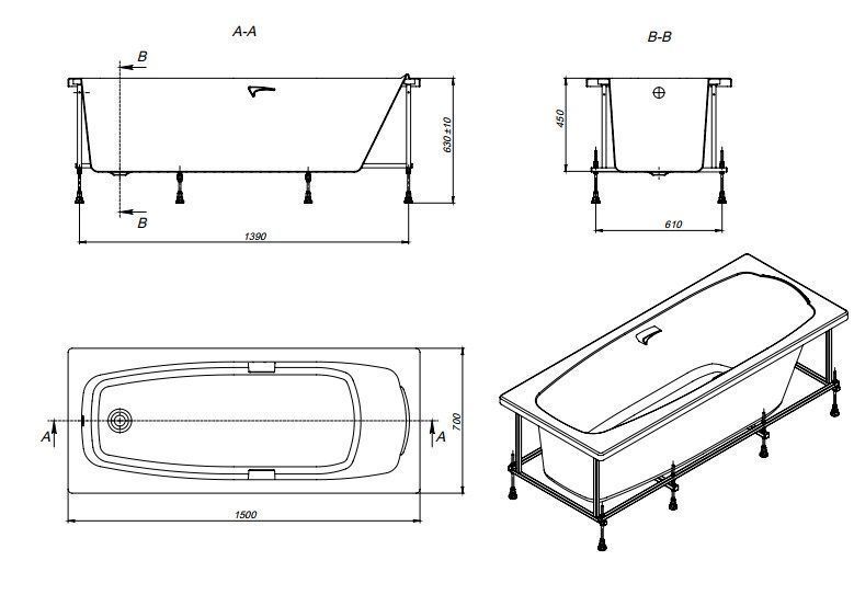Комплектующие для Акриловая ванна Roca Sureste 150x70
