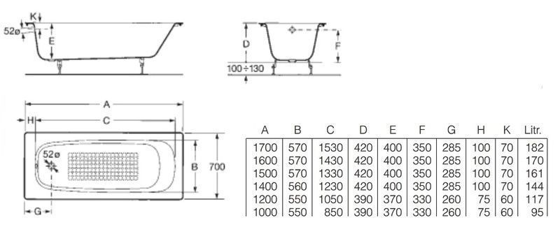 Ванна чугунная Roca Continental 212904001 (140х70)