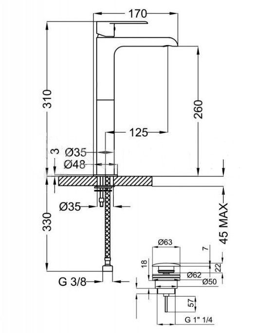 Высота излива (см)