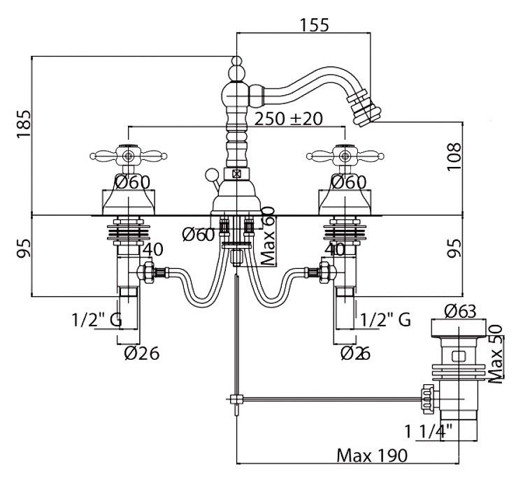 Смеситель Cezares Nostalgia NOSTALGIA-BBS2-03 для биде