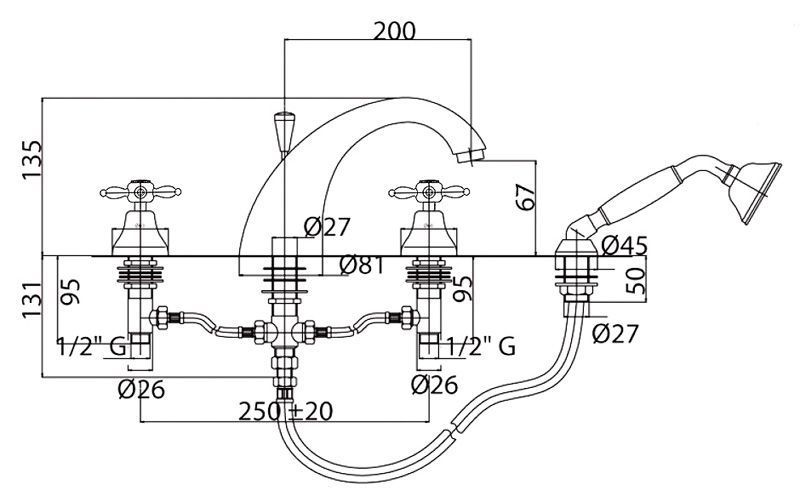 Смеситель Cezares Nostalgia NOSTALGIA-BVD-03 на борт ванны
