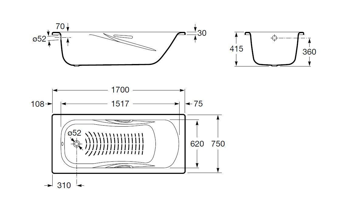 Комплектующие для Стальная ванна Roca Princess-N 170x75