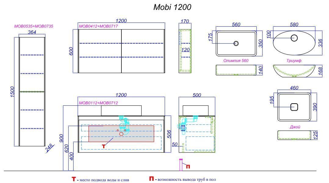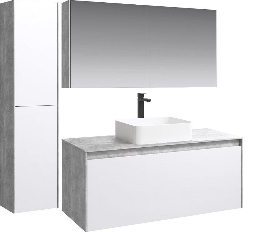 Тумба Aqwella Mobi 120 фасад белый, корпус бетон светлый
