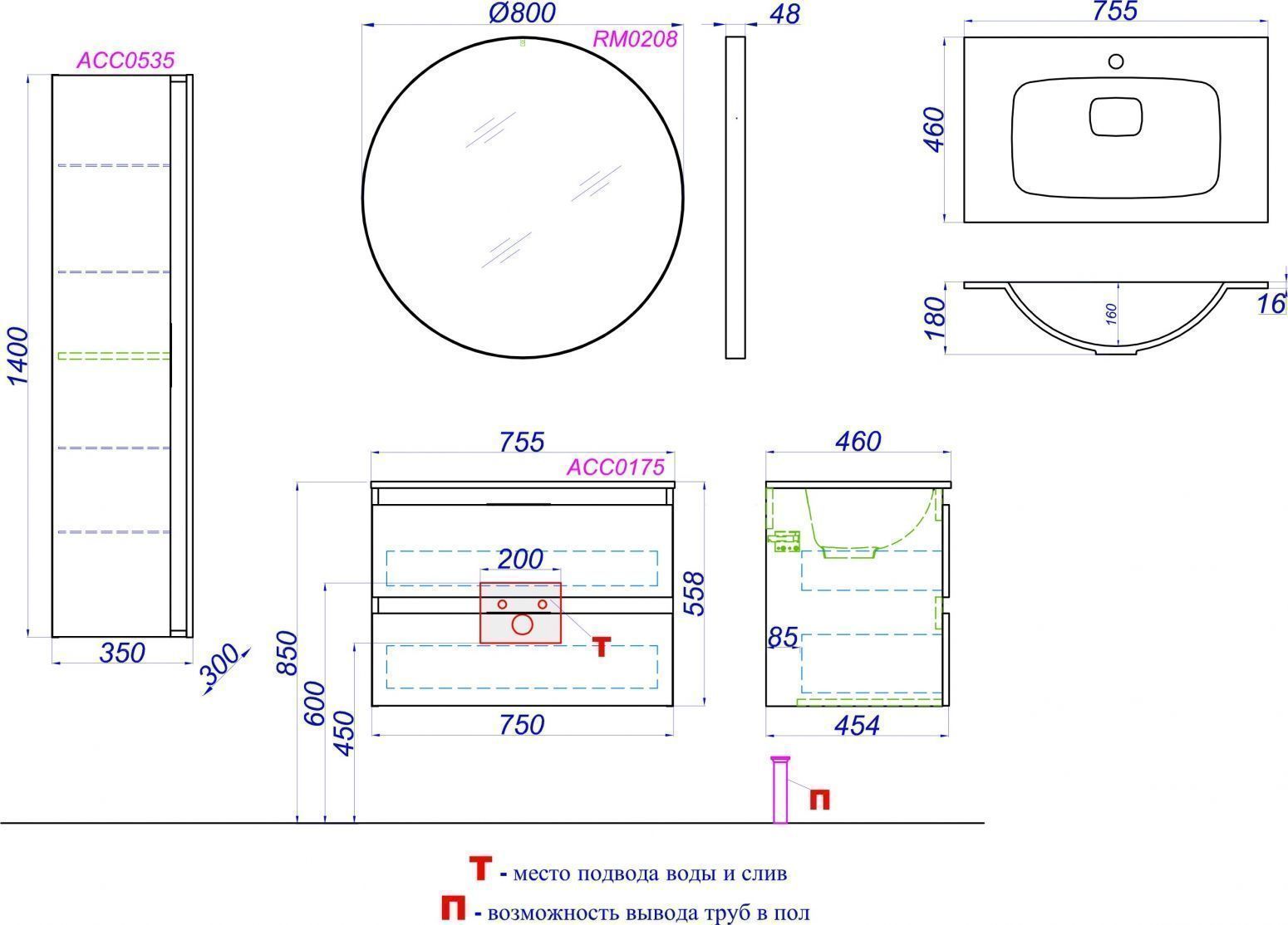 Тумба с раковиной Aqwella 5 stars Accent 75 дуб золотой