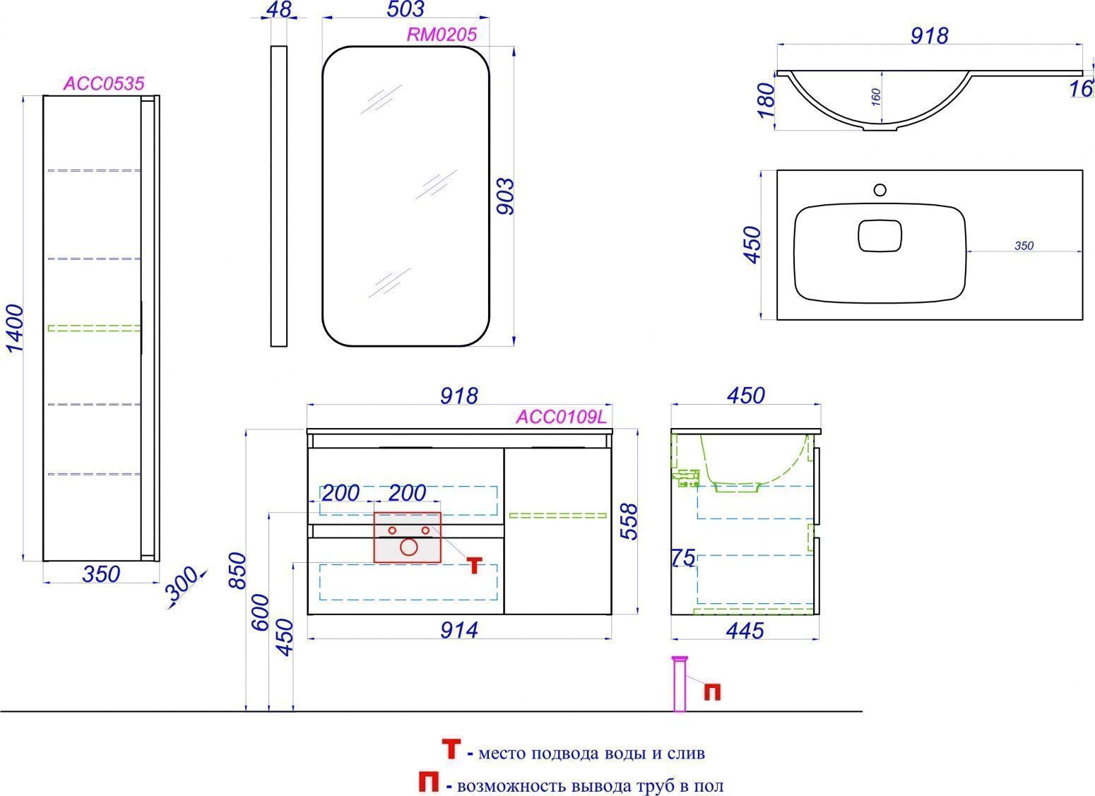 Тумба с раковиной Aqwella 5 stars Accent 90 L, белая
