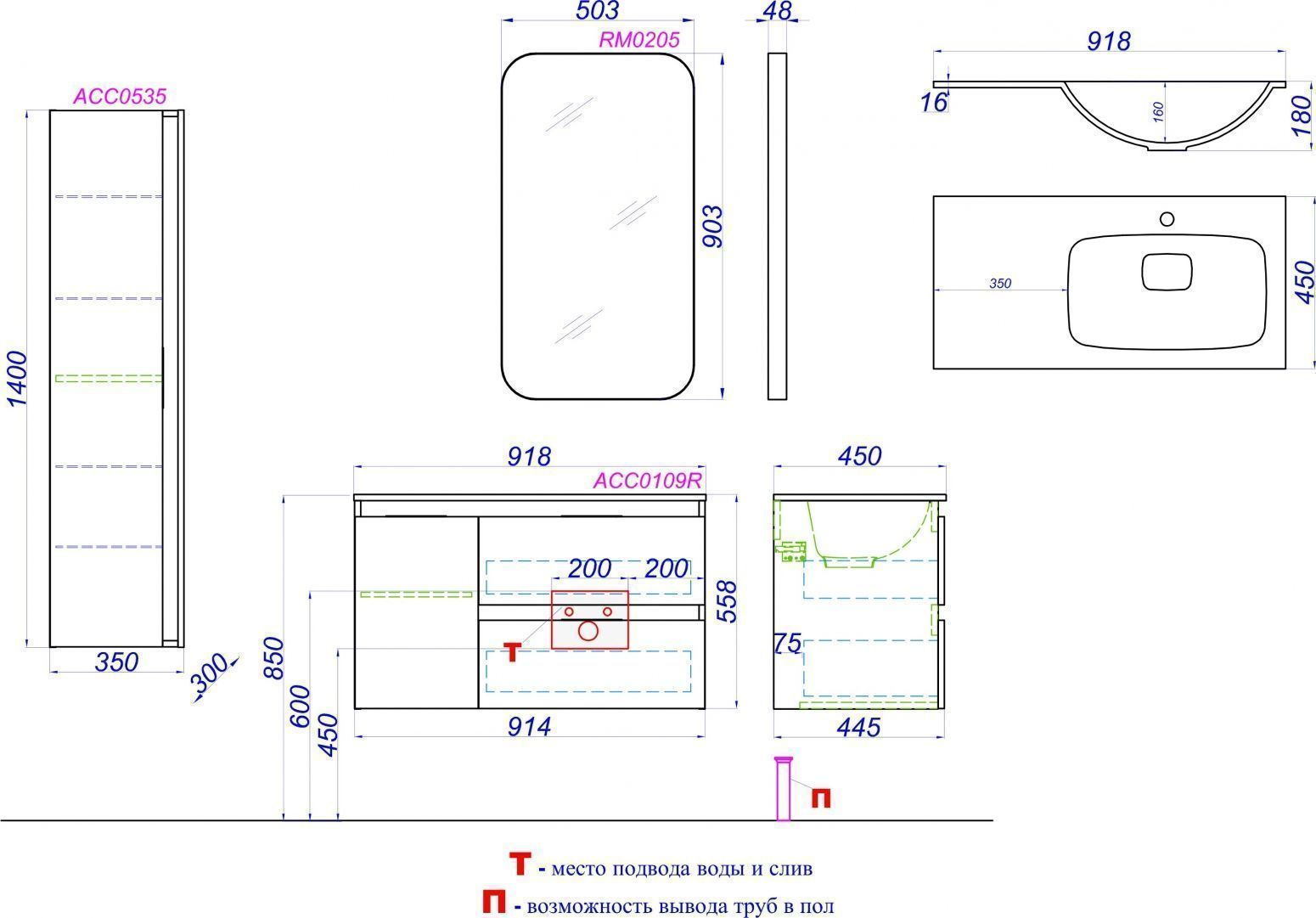 Тумба с раковиной Aqwella 5 stars Accent 90 R, белая
