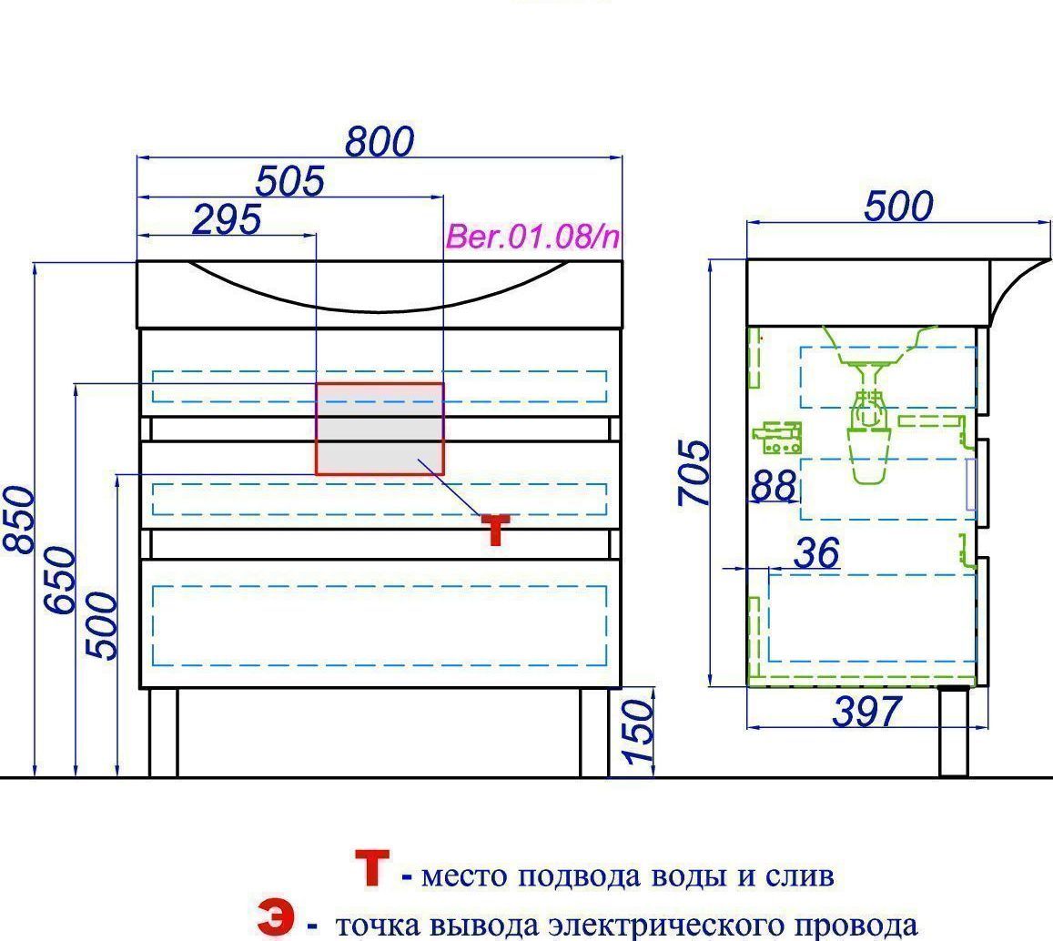 Тумба с раковиной Aqwella 5 stars Бергамо 80 напольная, акация