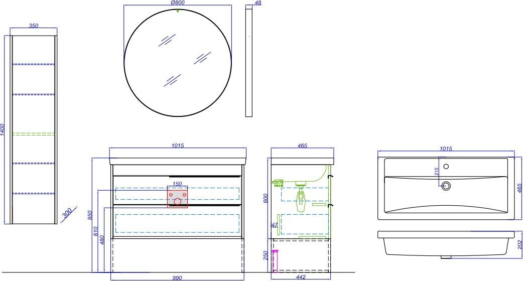 Тумба с раковиной Aqwella 5 stars Fargo 100 дуб балтийский