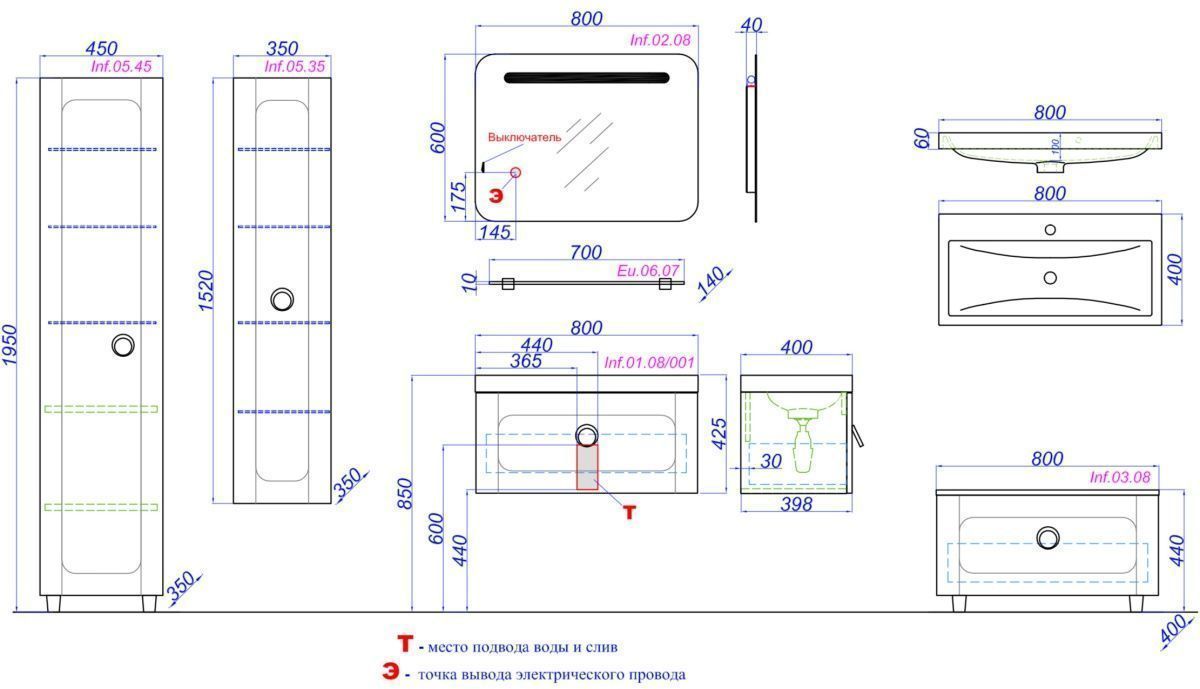Тумбы с раковиной серии Инфинити