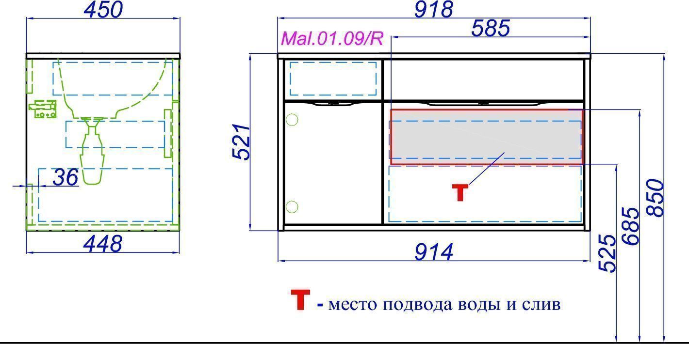 Тумба с раковиной Aqwella 5 stars Malaga 90 R белая