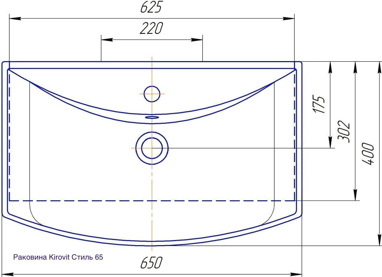 • Керамическая раковина Kirovit Стиль 65 (ш/в/г): 650x145x400 мм (по выбору)