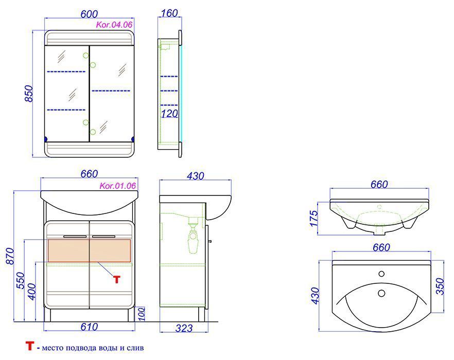 • Коллекция комплектуется керамическим умывальником Dreja Лагуна 65 или Kirovit Стиль 65.