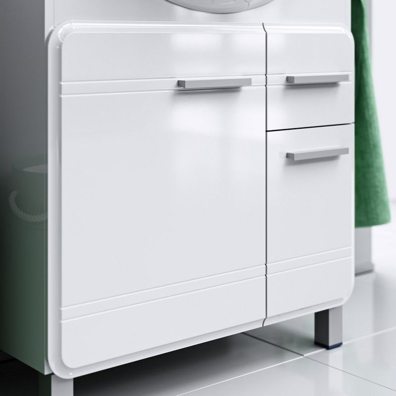 • Фасады коллекции производятся из МДФ (древесноволокнистой плиты повышенной плотности) и покрыты 5-ю слоями белой глянцевой эмали.