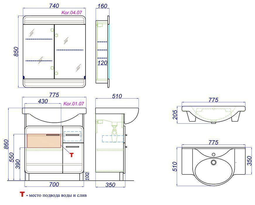 • Коллекция комплектуется керамическим умывальником Dreja Дрея 75 или Kirovit Стиль 75.