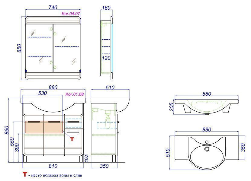• Коллекция комплектуется керамическим умывальником Dreja Дрея 85 или Kirovit Стиль 85.