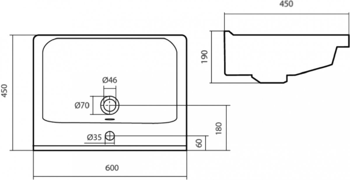 • Керамическая раковина "Santek Миранда 60" (ш/в/г): 600x190x450 мм