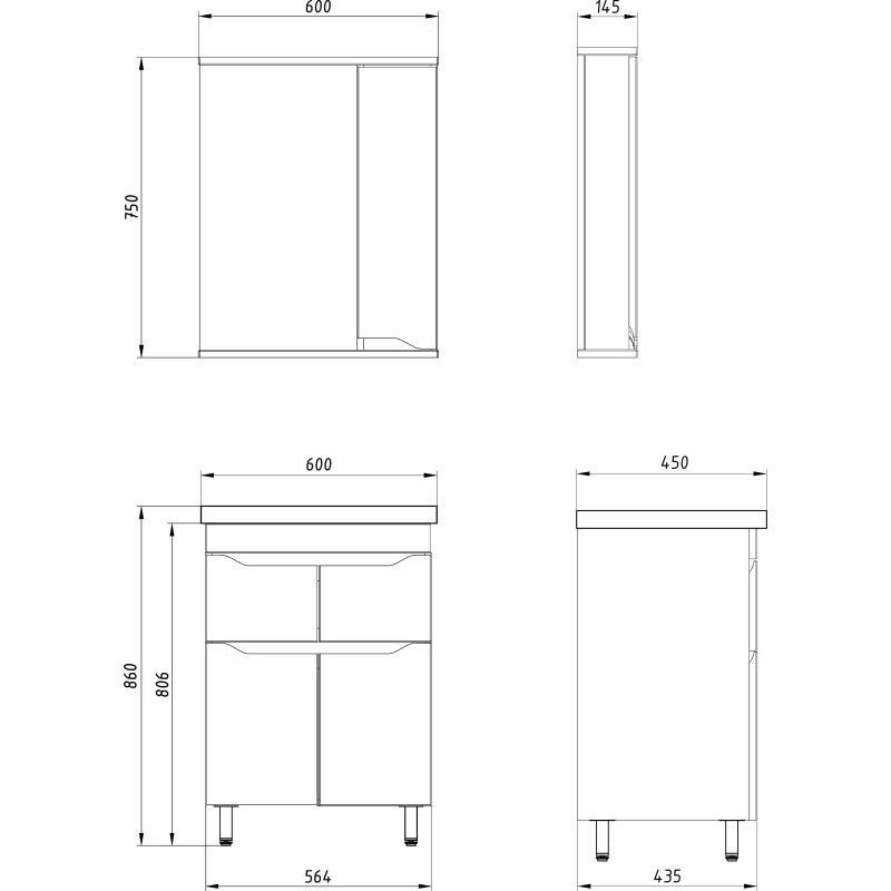 • Подстолье под раковину (ш/в/г): 564x806x435 мм