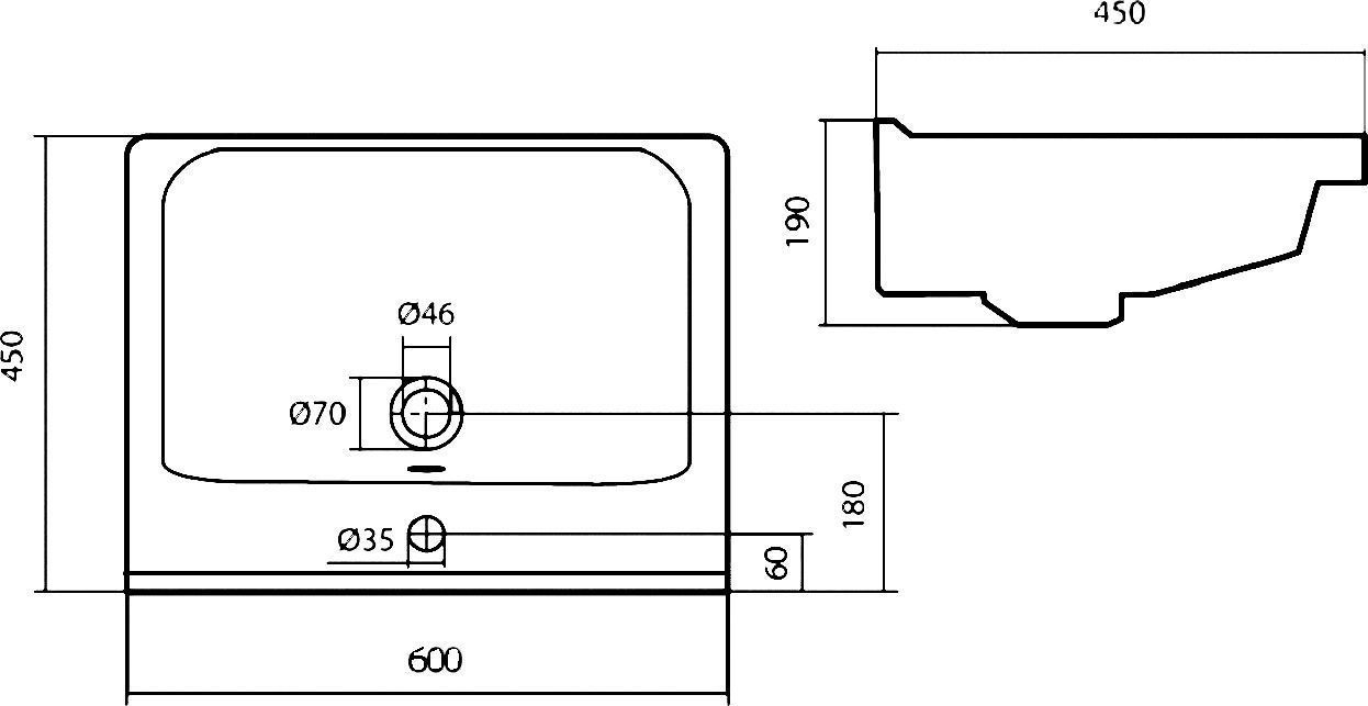 • Керамическая раковина "Santek Миранда 60" (ш/в/г): 600x190x450 мм