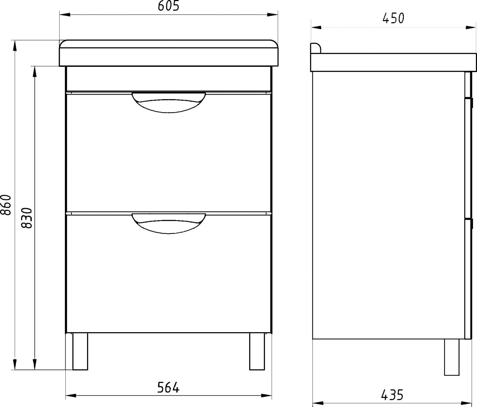 • Подстолье под раковину (ш/в/г): 564x830x435 мм