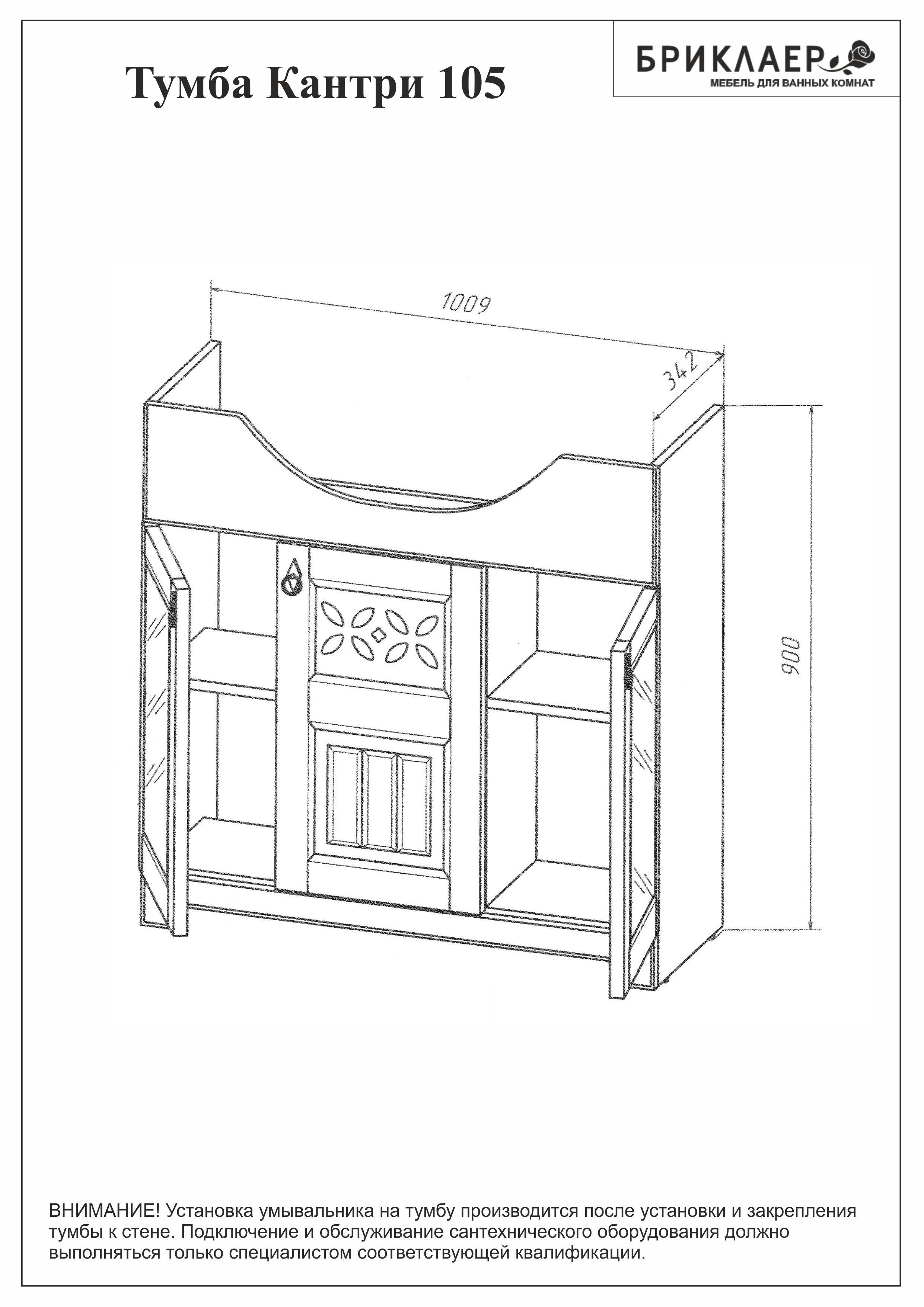 Тумба с раковиной Бриклаер Кантри 105 бежевый дуб прованс