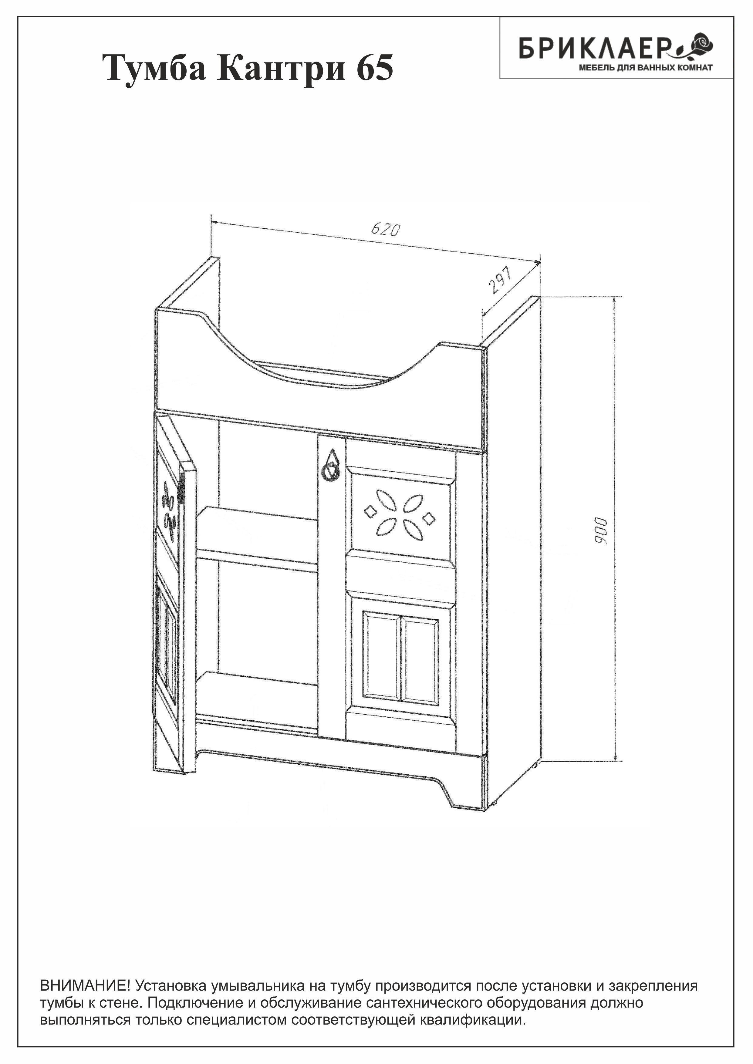 Тумба с раковиной Бриклаер Кантри 65 бежевый дуб прованс