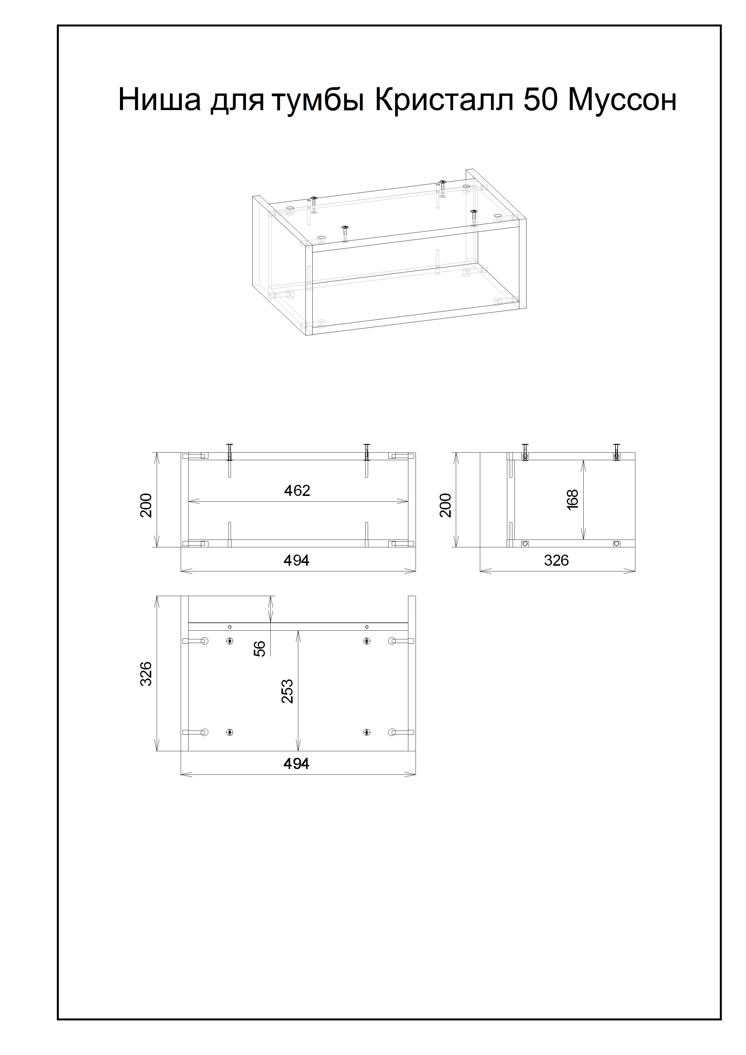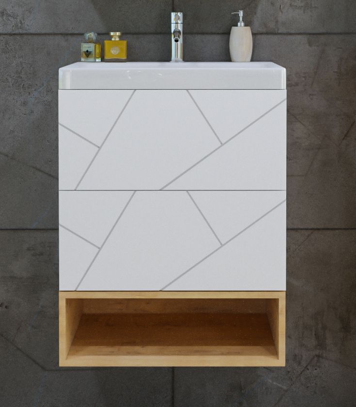 Тумба с раковиной Бриклаер Кристалл 50 с нишей, белая