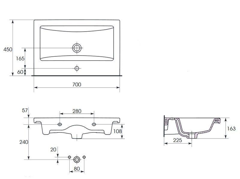 Тумба с раковиной Бриклаер Кристалл 70 без ниши, белая