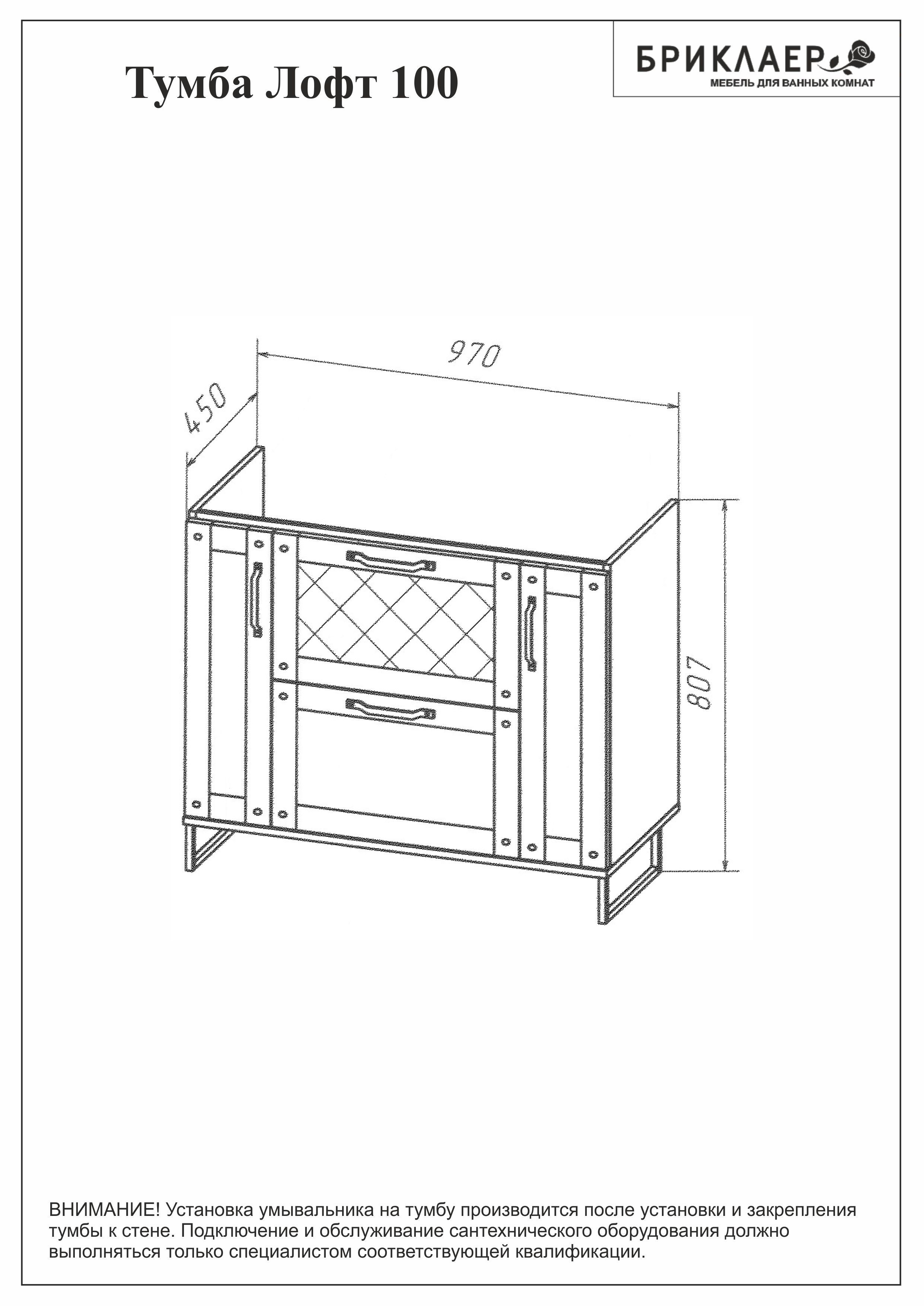 Тумба с раковиной Бриклаер Лофт 100 метрополитен грей