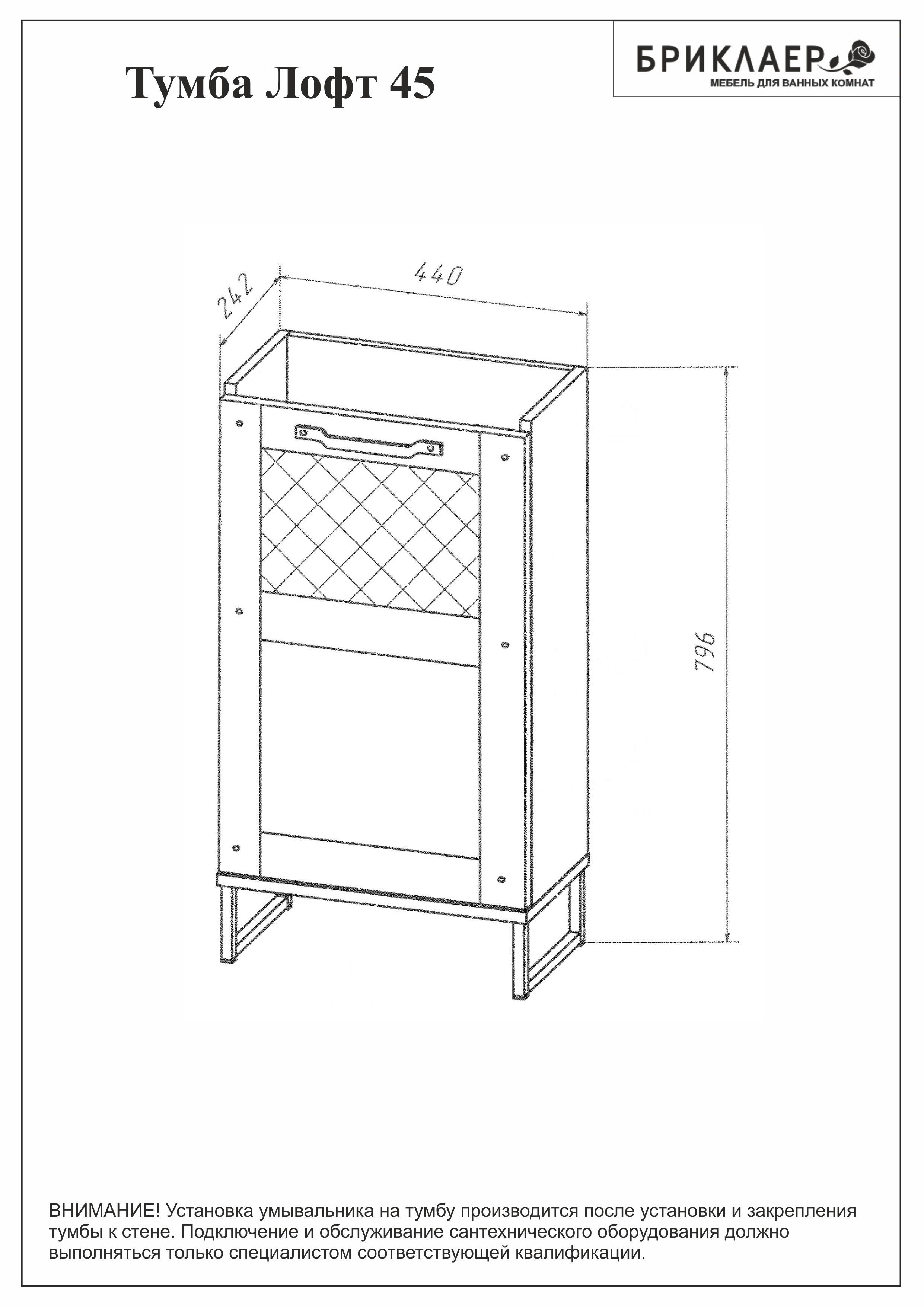Тумба с раковиной Бриклаер Лофт 45 метрополитен грей