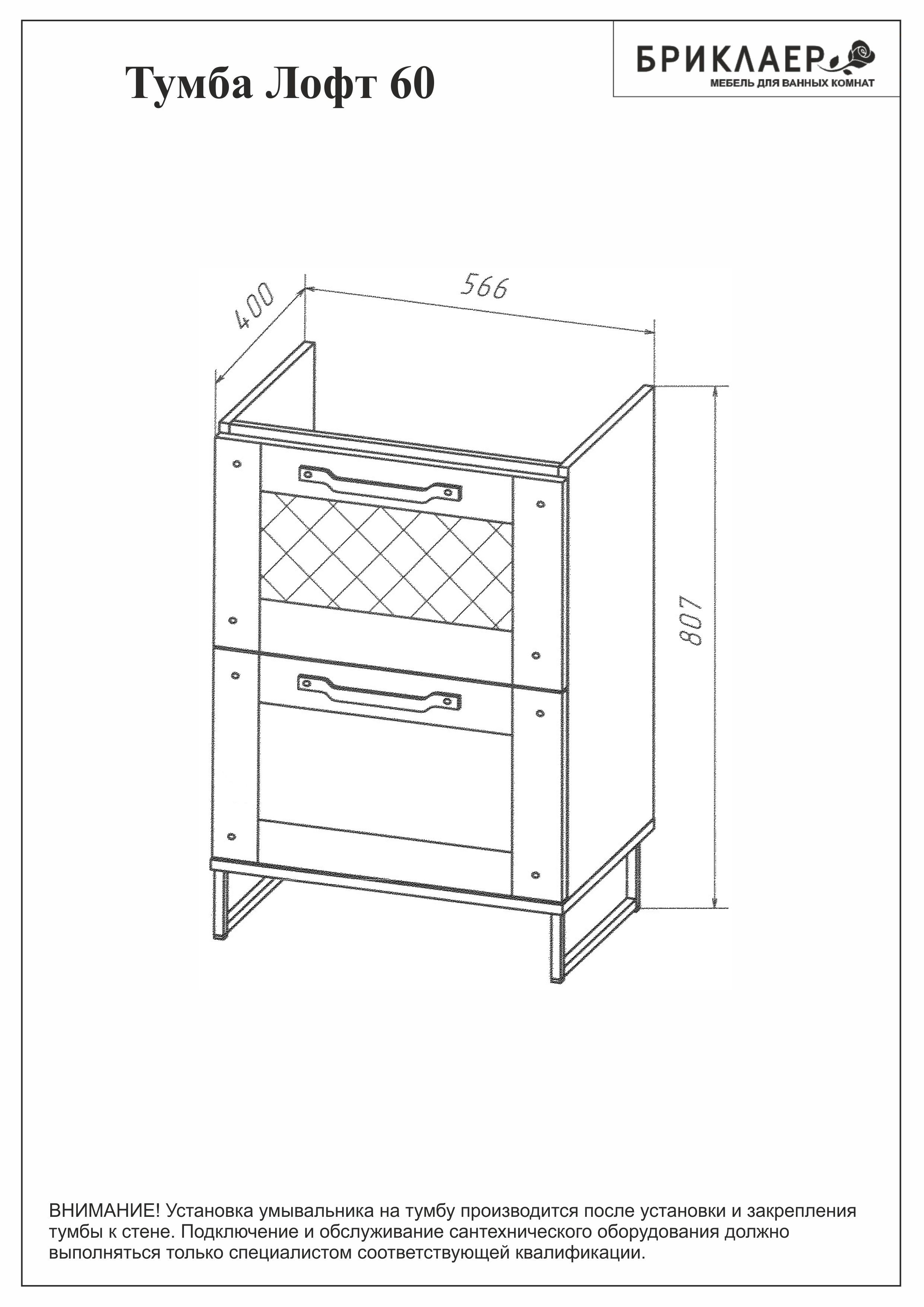 Тумба с раковиной Бриклаер Лофт 60 метрополитен грей