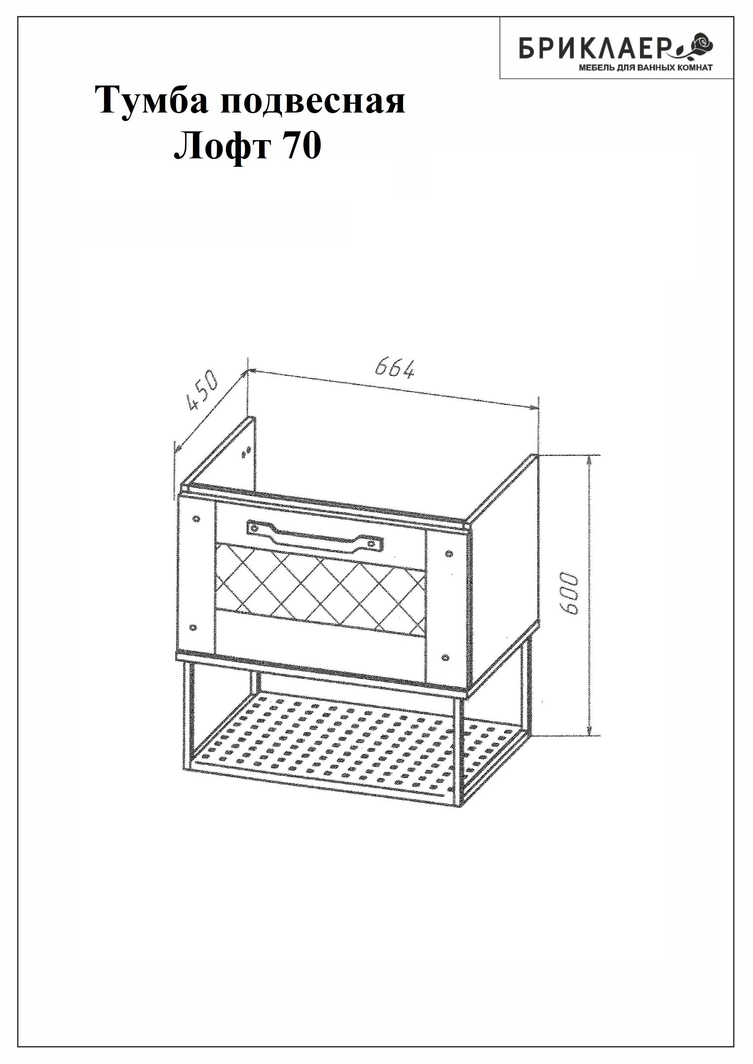 Тумба с раковиной Бриклаер Лофт 70 подвесная метрополитен грей