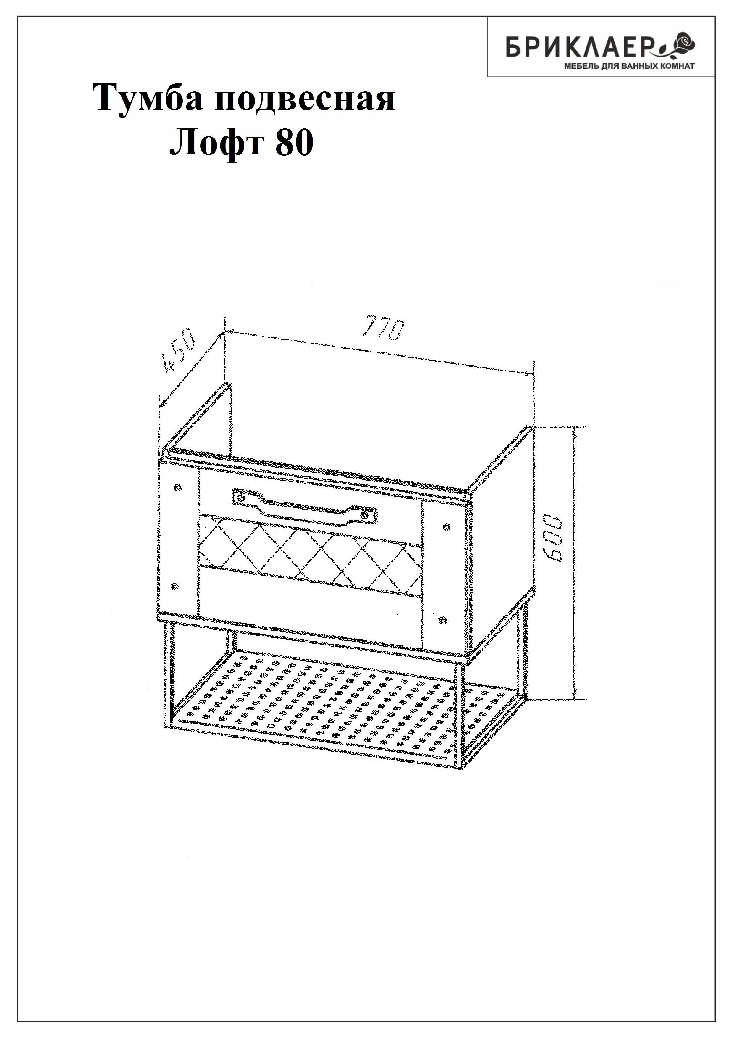 Тумба с раковиной Бриклаер Лофт 80 подвесная метрополитен грей