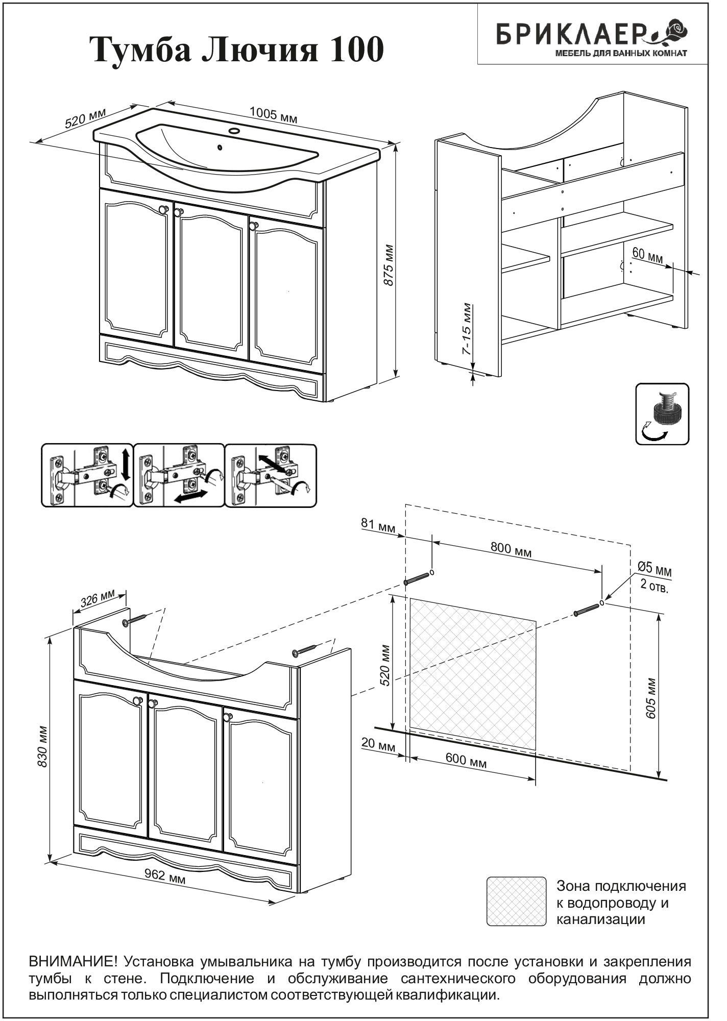 Тумба с раковиной Бриклаер Лючия 100 белая