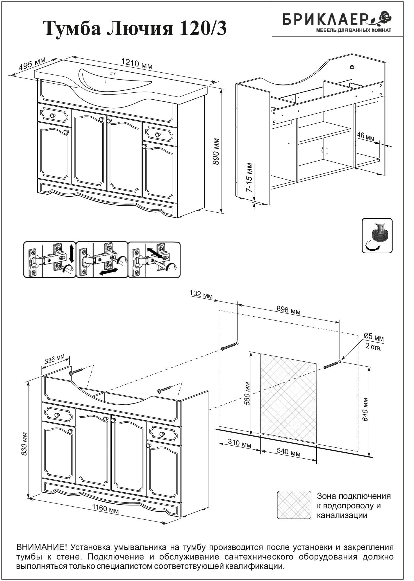 Тумба с раковиной Бриклаер Лючия 120 белая