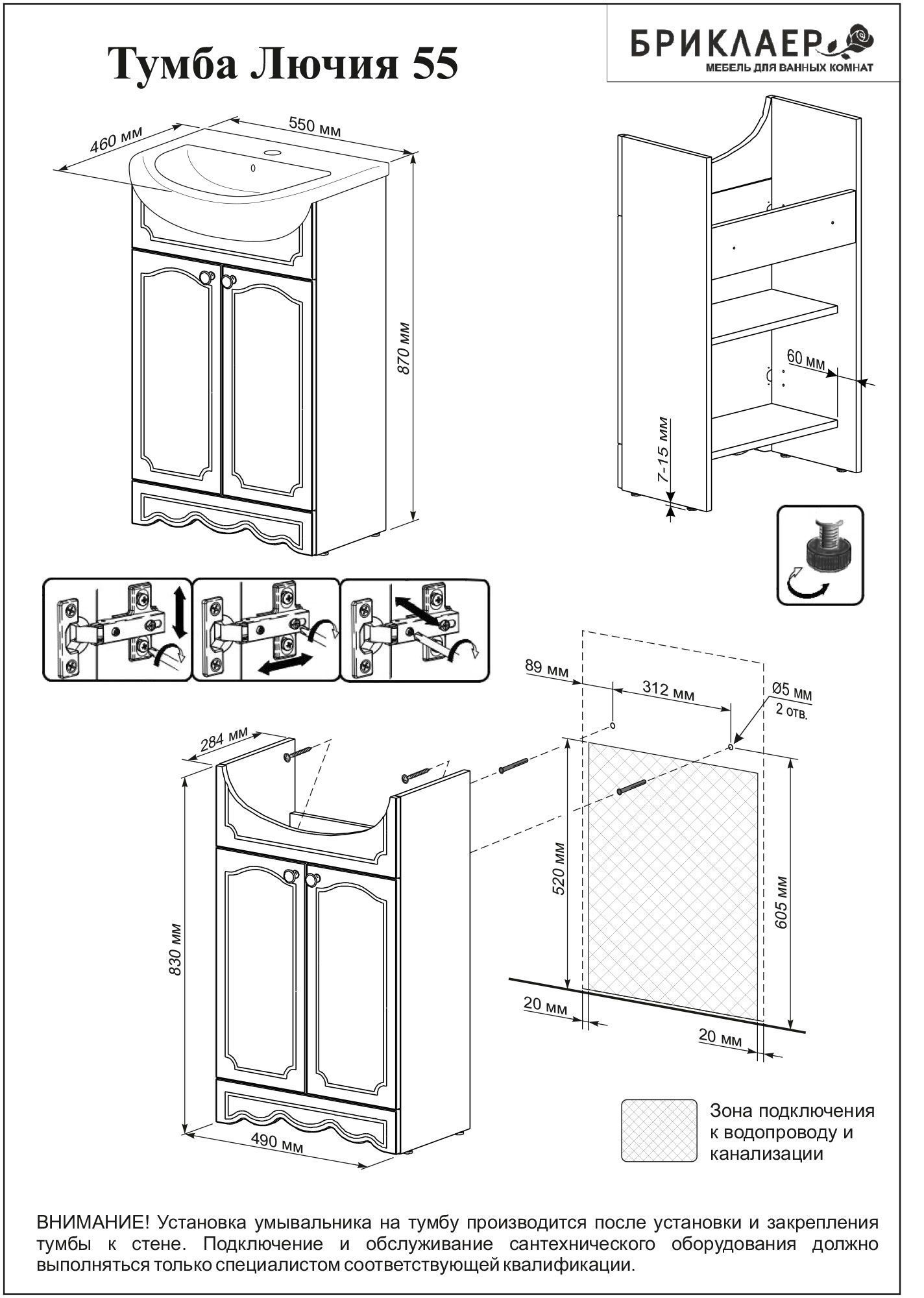 Тумба с раковиной Бриклаер Лючия 55 белая